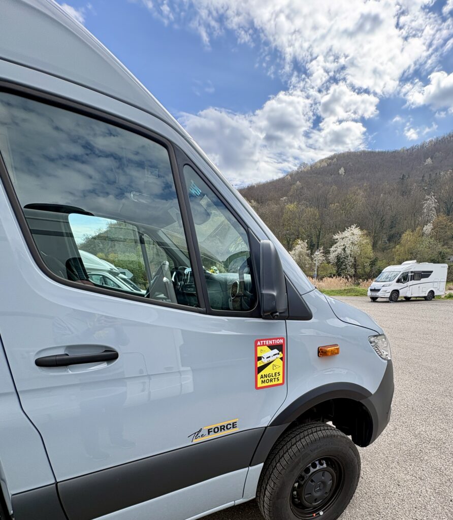 Zudem ist unser neuer Camper über 3,5 Tonnen schwer. Wir brauchen also Schilder, die auf den toten Winkel hinweisen. Damit wir die nicht dauerhaft am Fahrzeug haben, habe ich eine magnetische Version* gekauft.