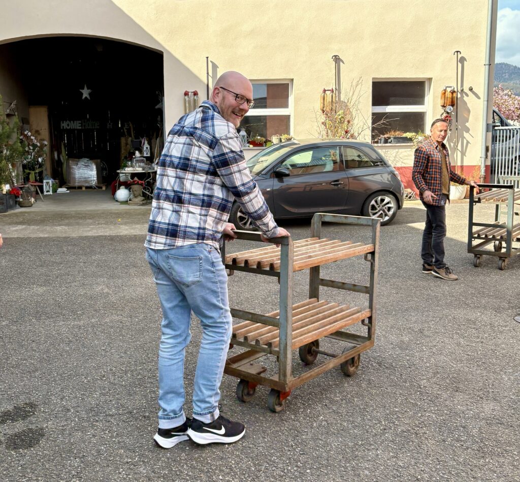 Am nächsten Morgen müssen wir den gekauften Wein noch abholen. Dabei werden wir direkt eingespannt und müssen ein wenig helfen Flaschen zu verräumen. So haben wir uns dann den kostenlosen Stellplatz redlich verdient.