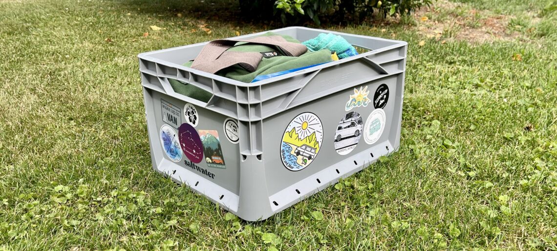 Die Kiste selber ist eine klassische Eurobox* mit den Maßen 30 x 40 cm und einer Höhe von 22 Zentimetern. Damit passt die Kiste ideal in den Kofferraum unseres Bullis. Aber was genau ist denn da überhaupt drin? Schauen wir mal…